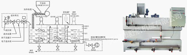 也有分批制備和投加功能的二槽式機(jī)型,或半自動制備系統(tǒng),簡易型溶液藥裝置。